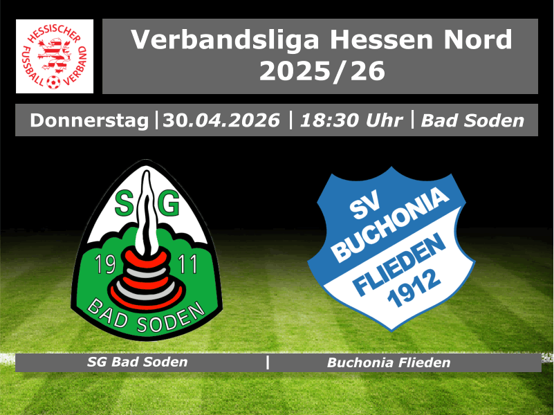 Zum Meisterschaftsspiel der Verbandsliga Hessen Nord begrüßen wir am Samstag, 25.April 2026, um 15:00 Uhr die Mannschaft der SG Calden/Meimbressen, das Trainer- und Betreuerteam sowie alle mitgereisten Fans ganz herzlich in Bad Soden. Nach dem umjubelten 3:2-Auswärtssieg im Spitzenspiel beim SV Steinbach hat die Mannschaft um […]
