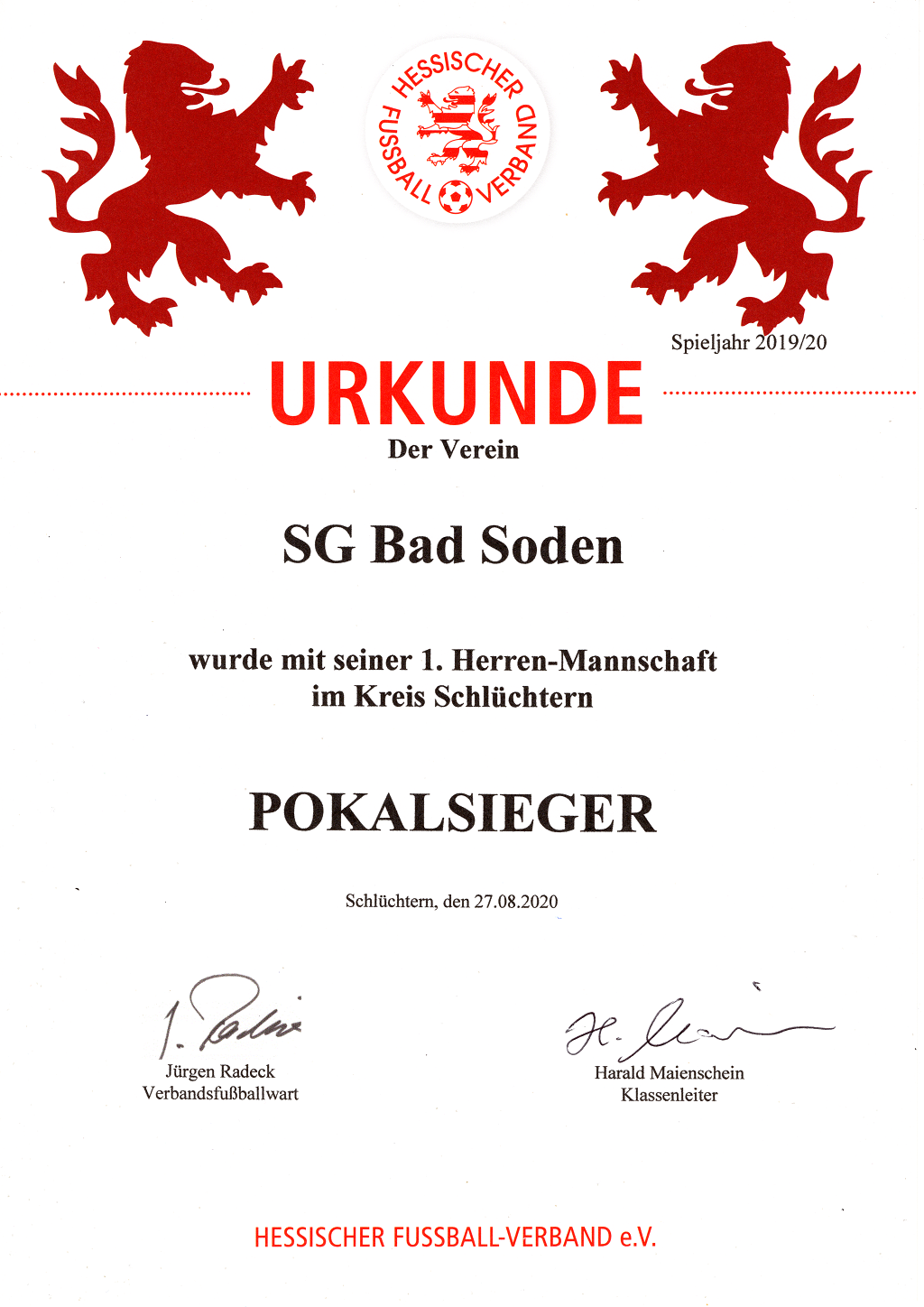 2022/23 KOL Meisterschafts-Urkunde