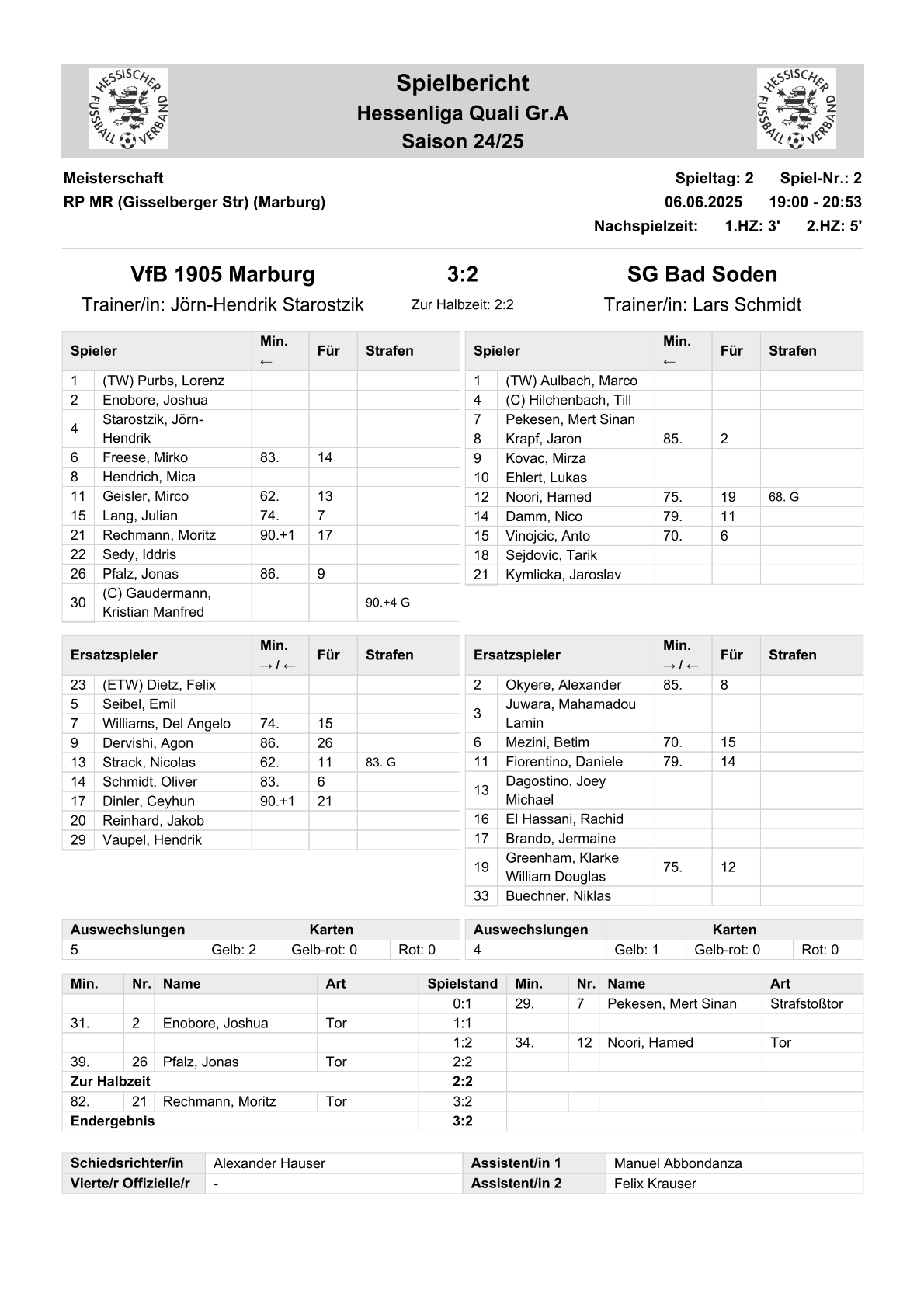 2024/25 VL Spiele im Stenogramm