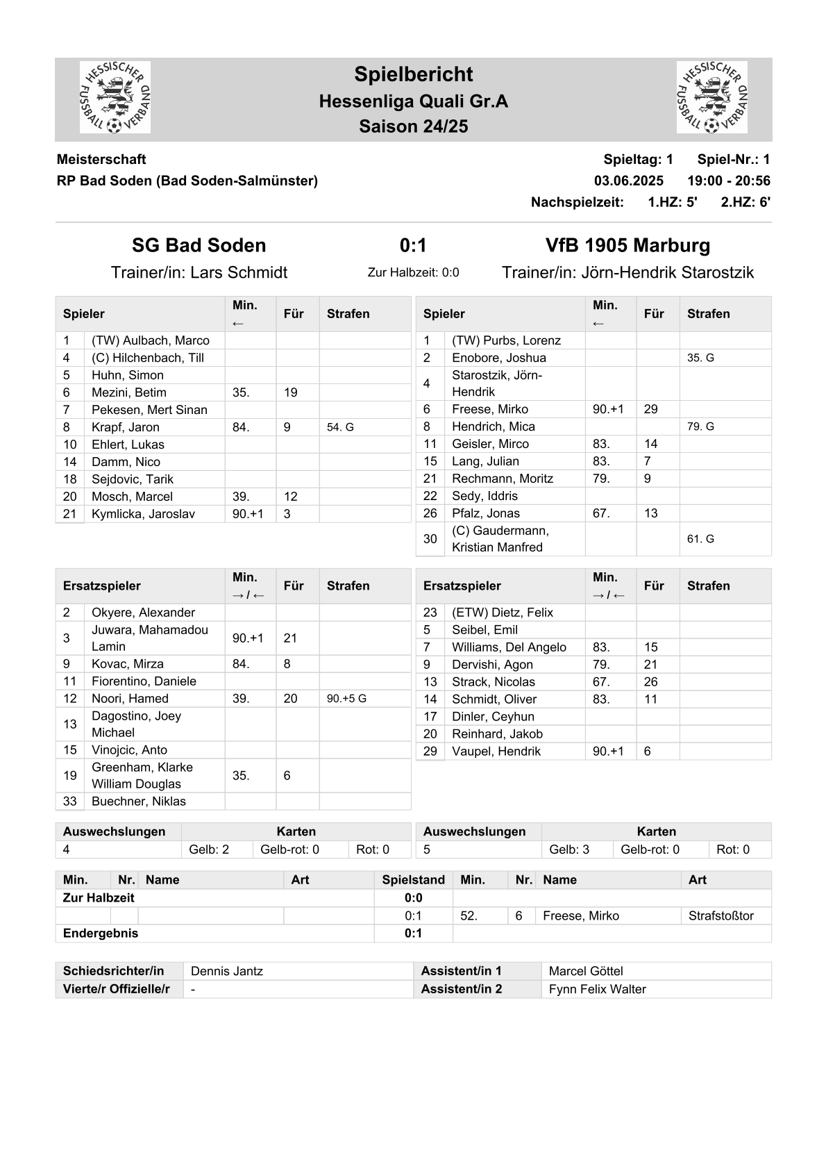 2025/26 VL Spiele im Stenogramm