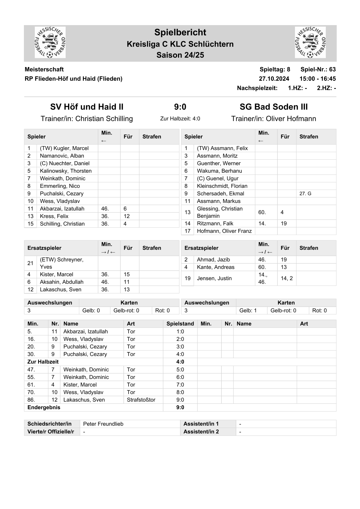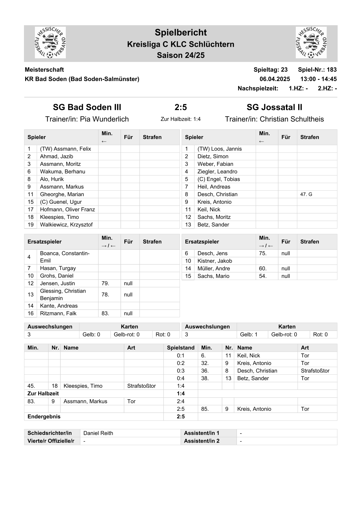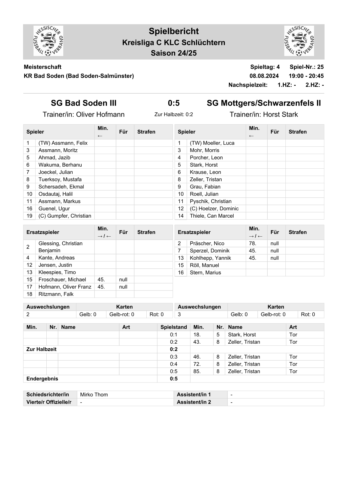 2024/25 Spiele im Stenogramm