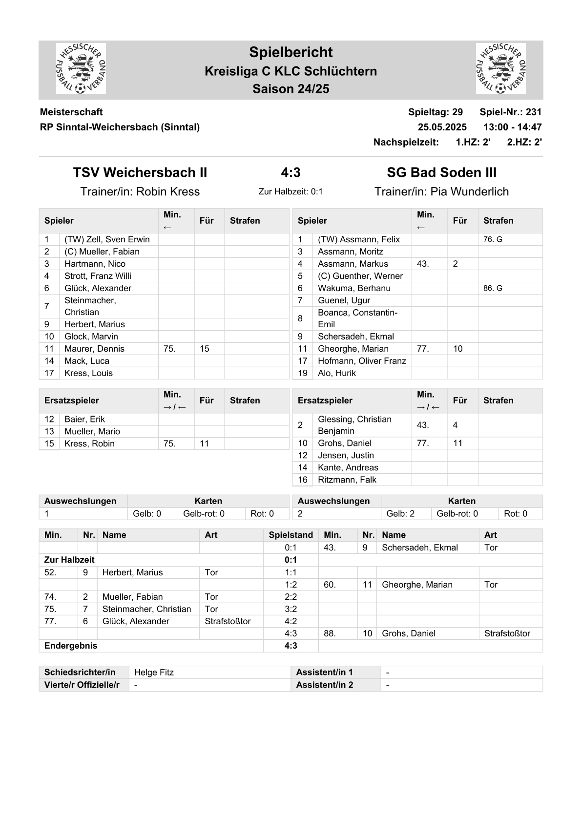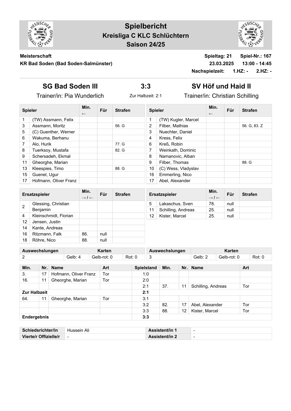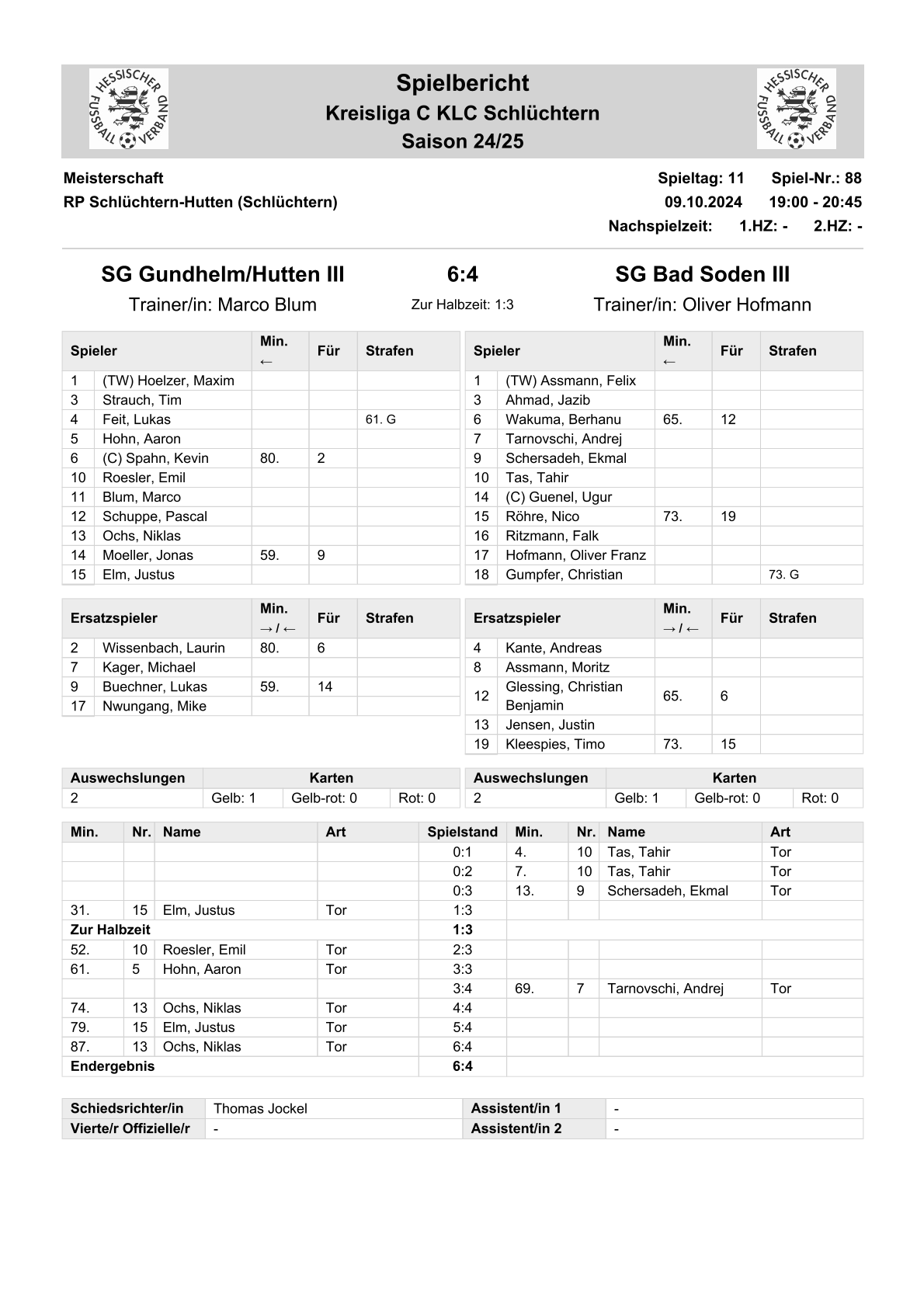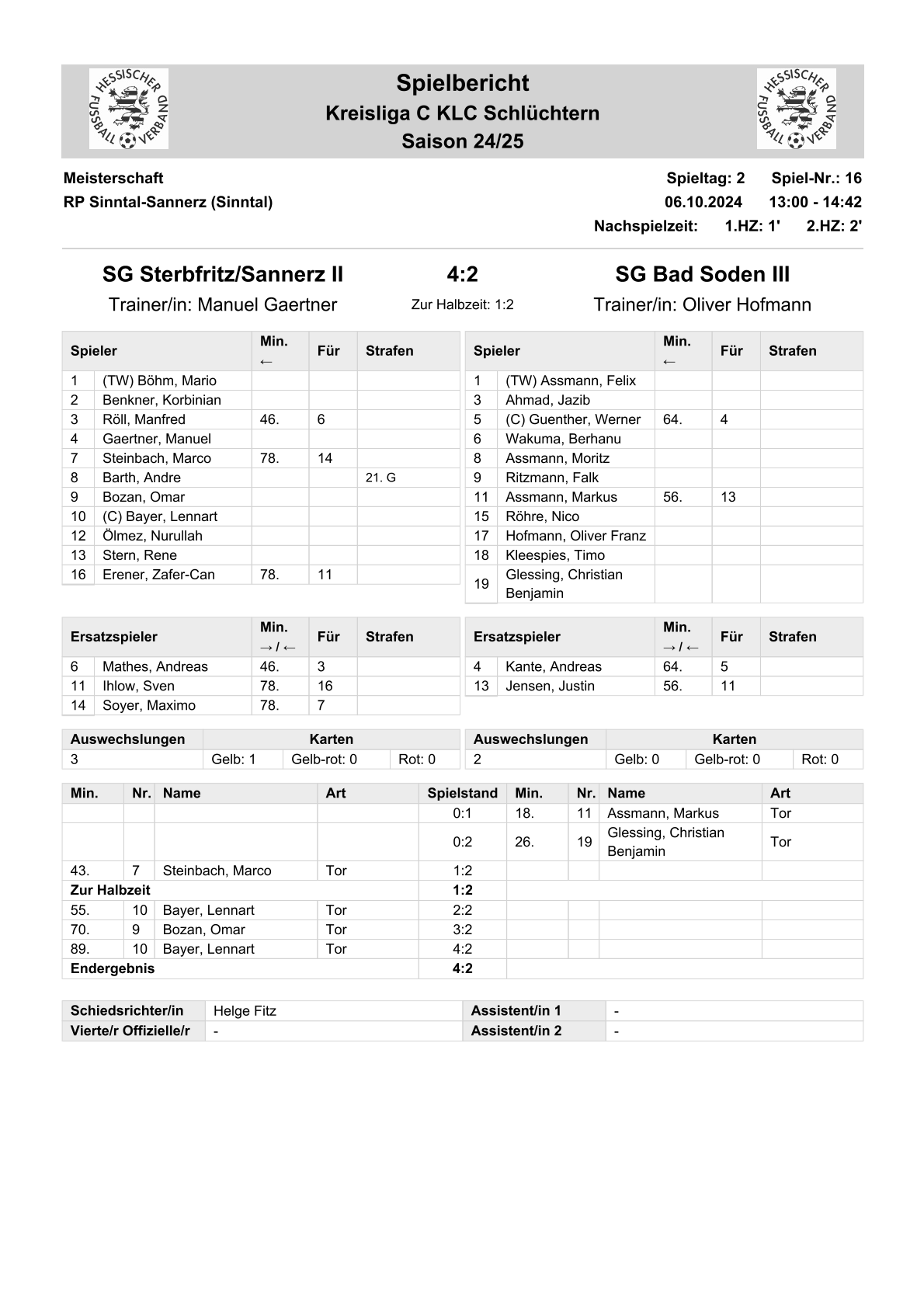 2024/25 GL Spiele im Stenogramm