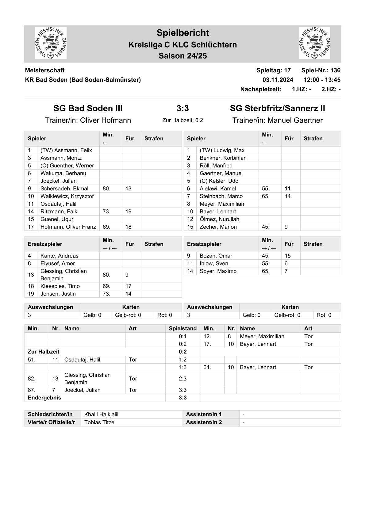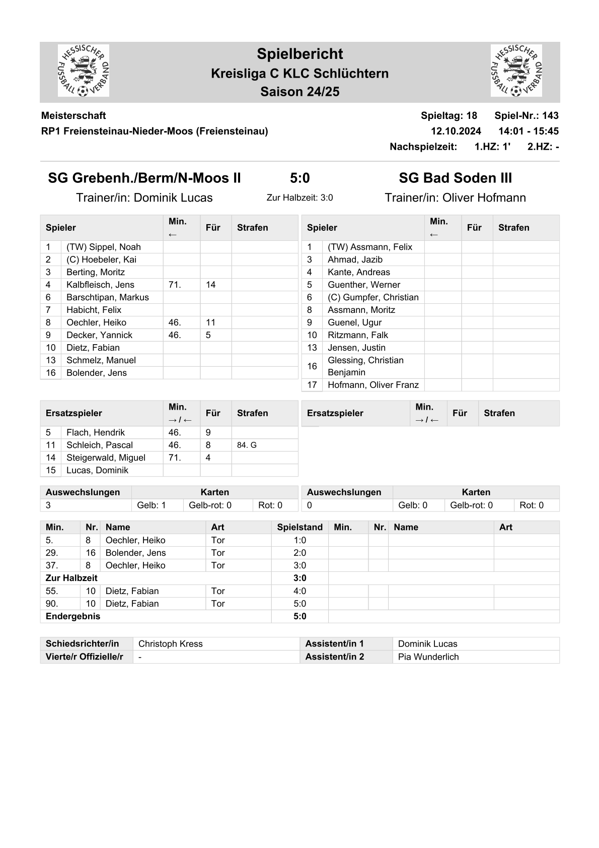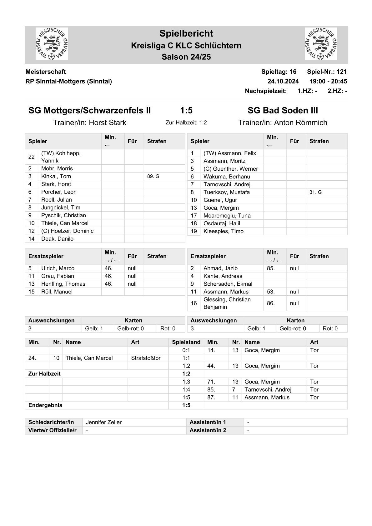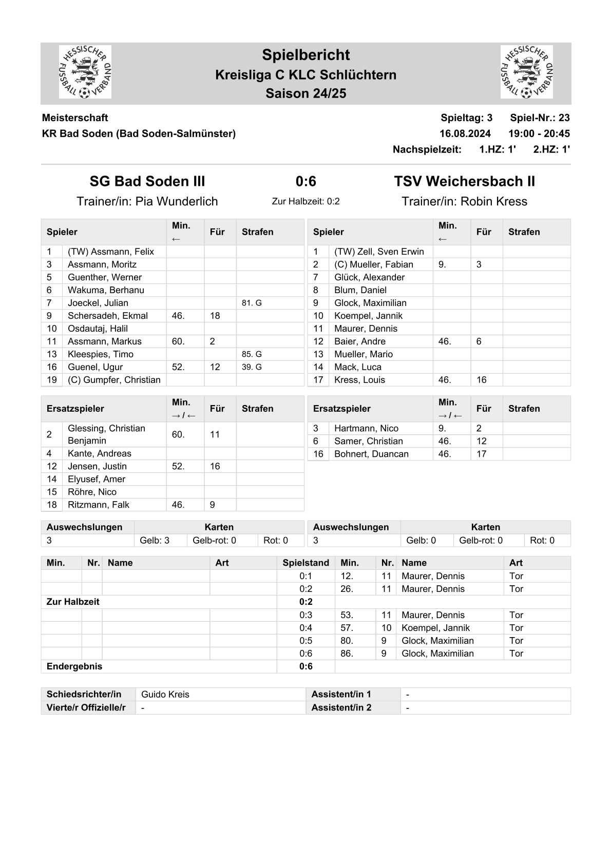 2024/25 GL Spiele im Stenogramm