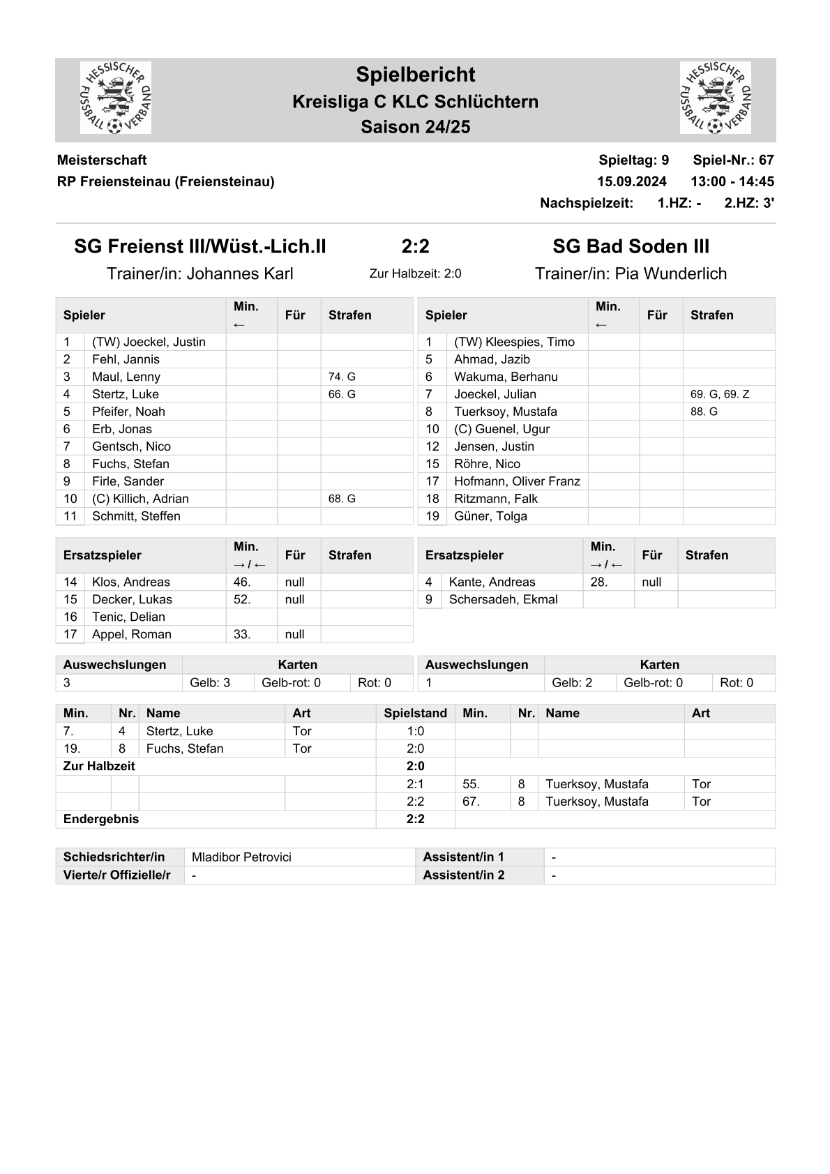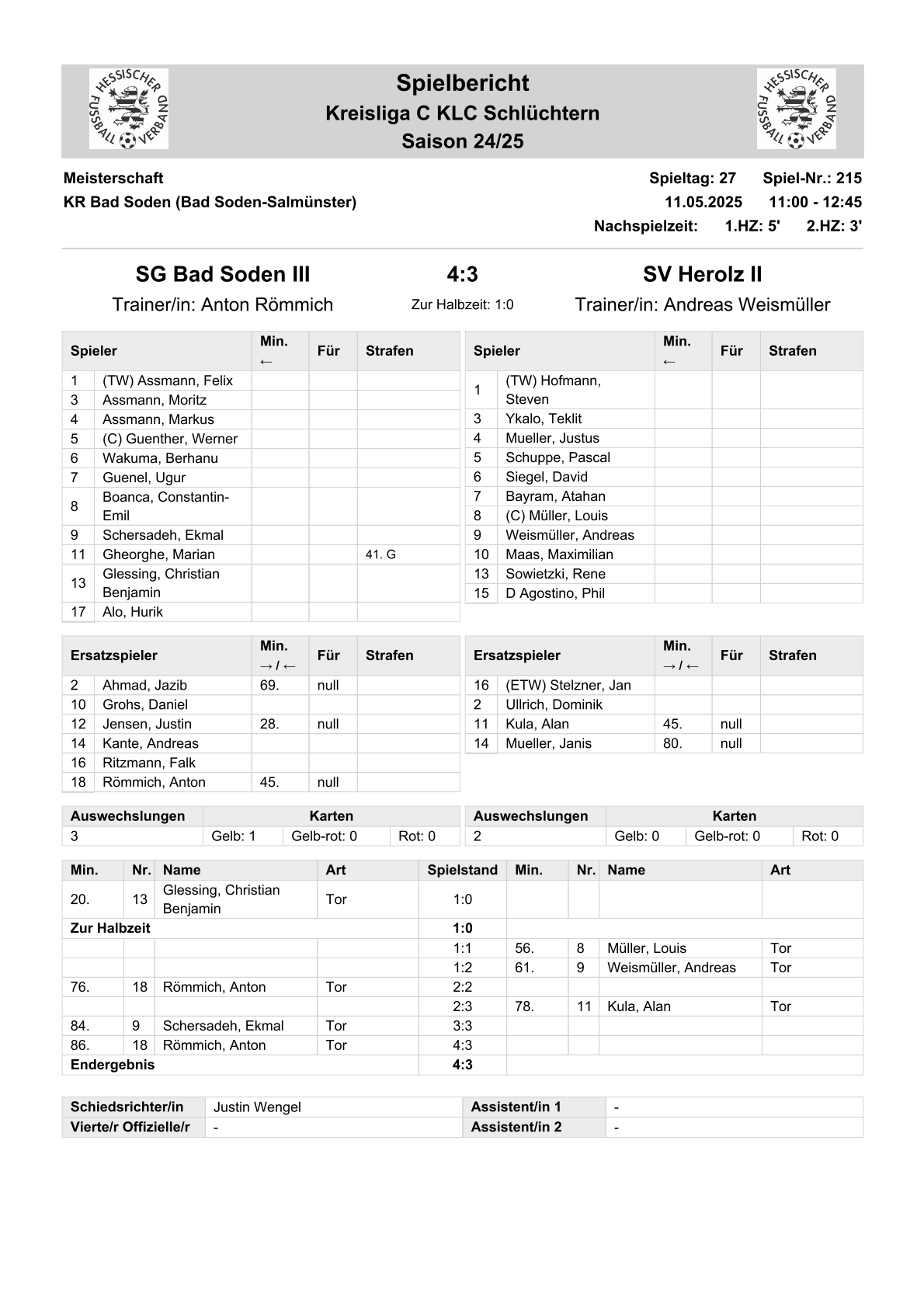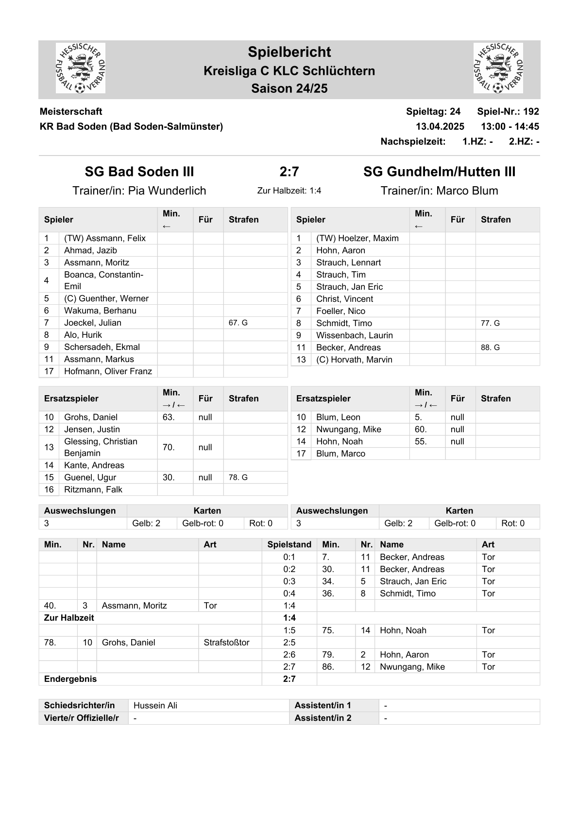2024/25 KL-C Spiele im Stenogramm