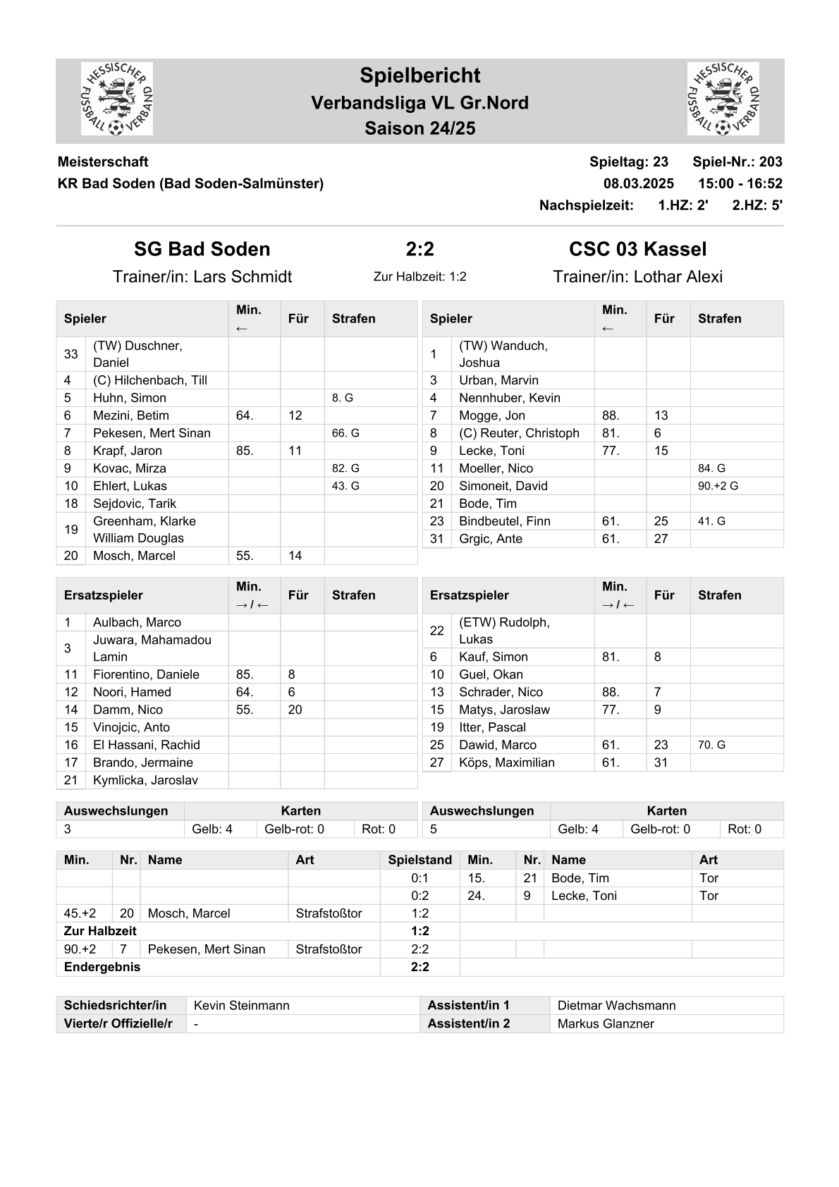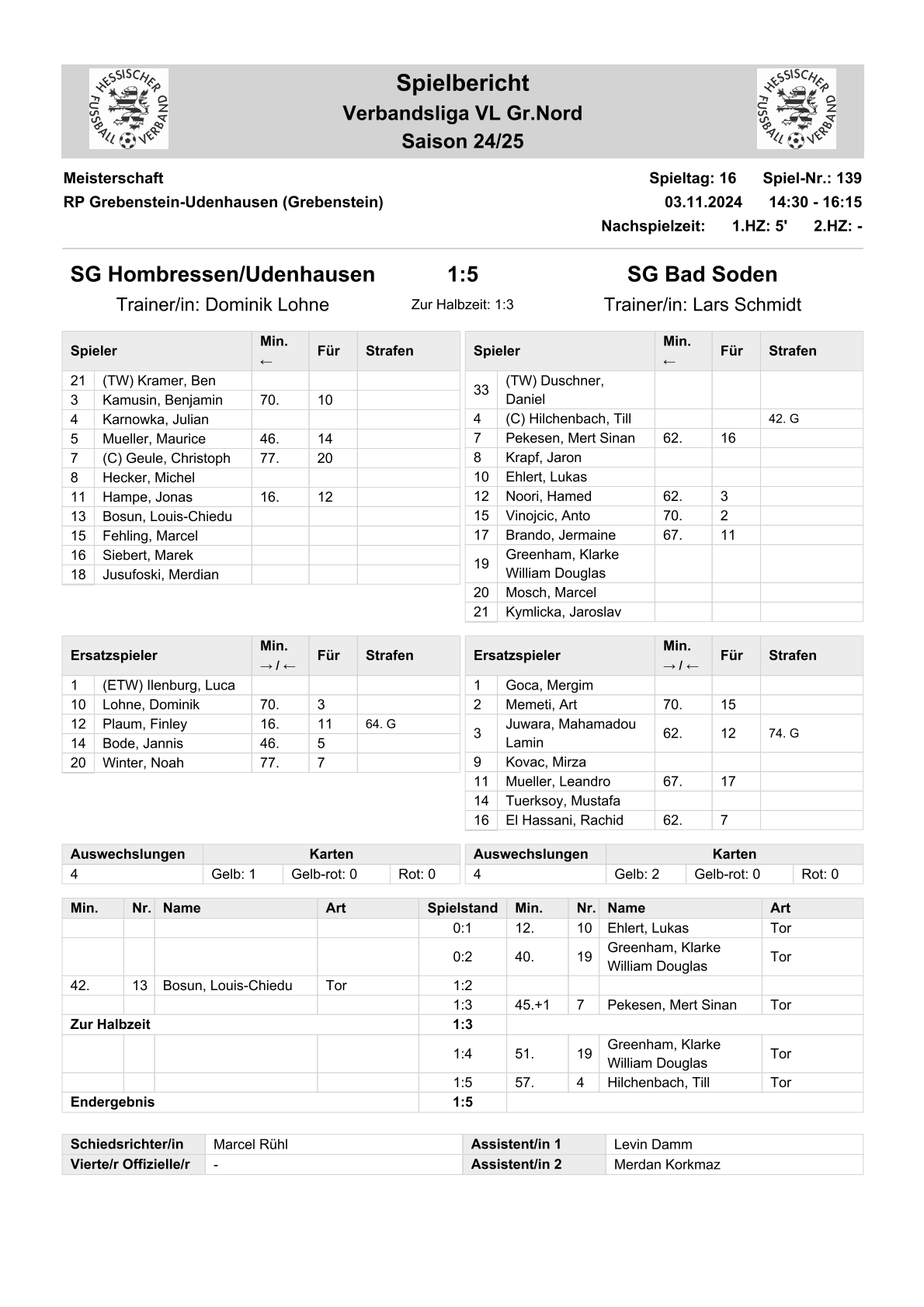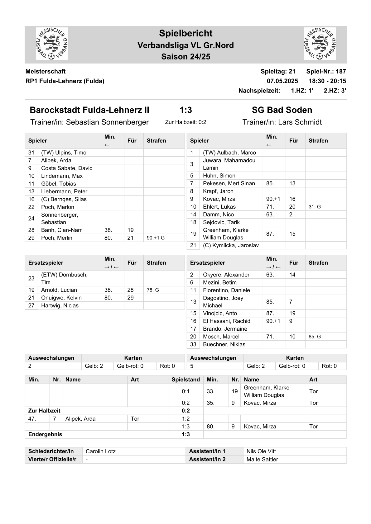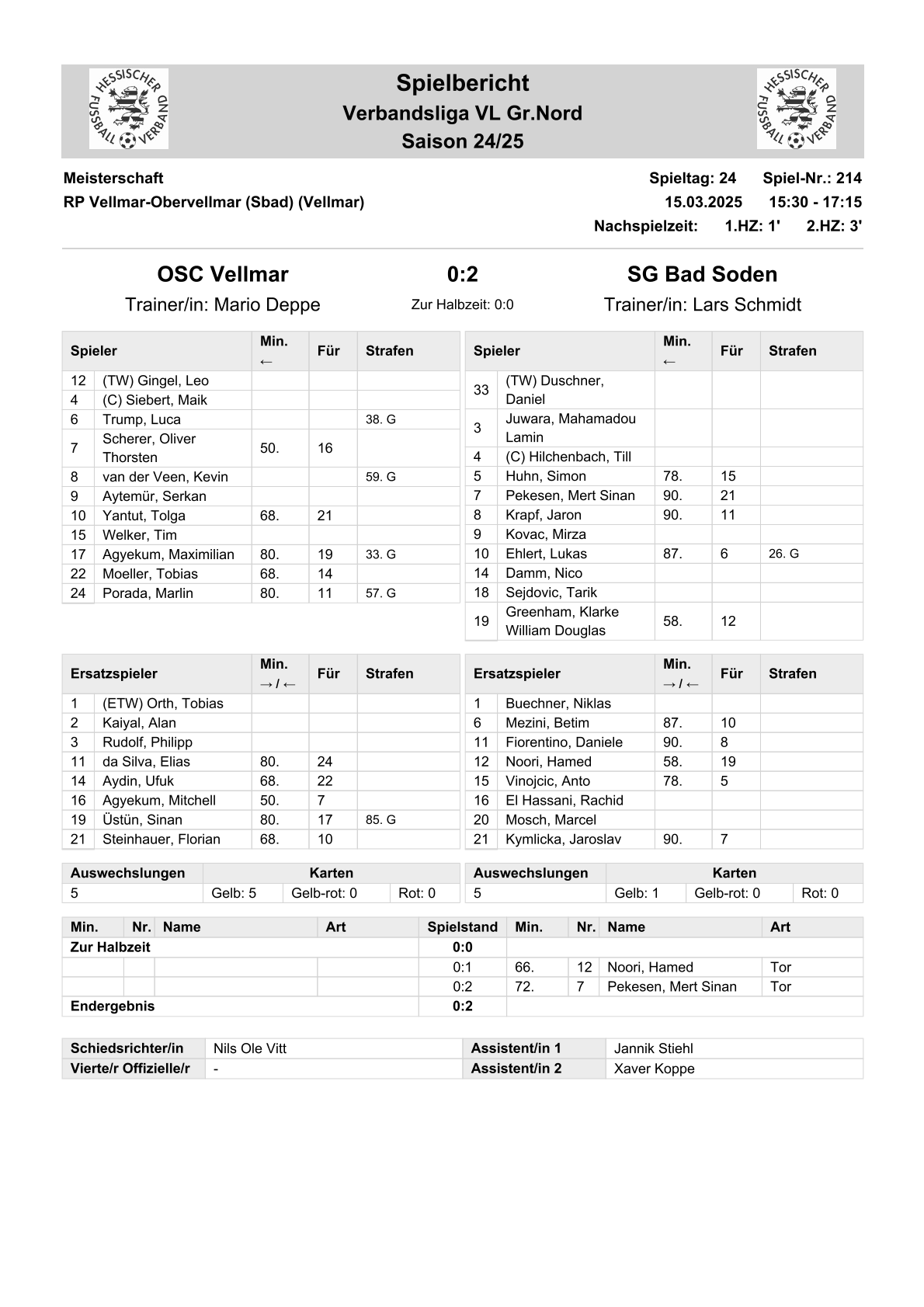 2024/25 VL Spiele im Stenogramm