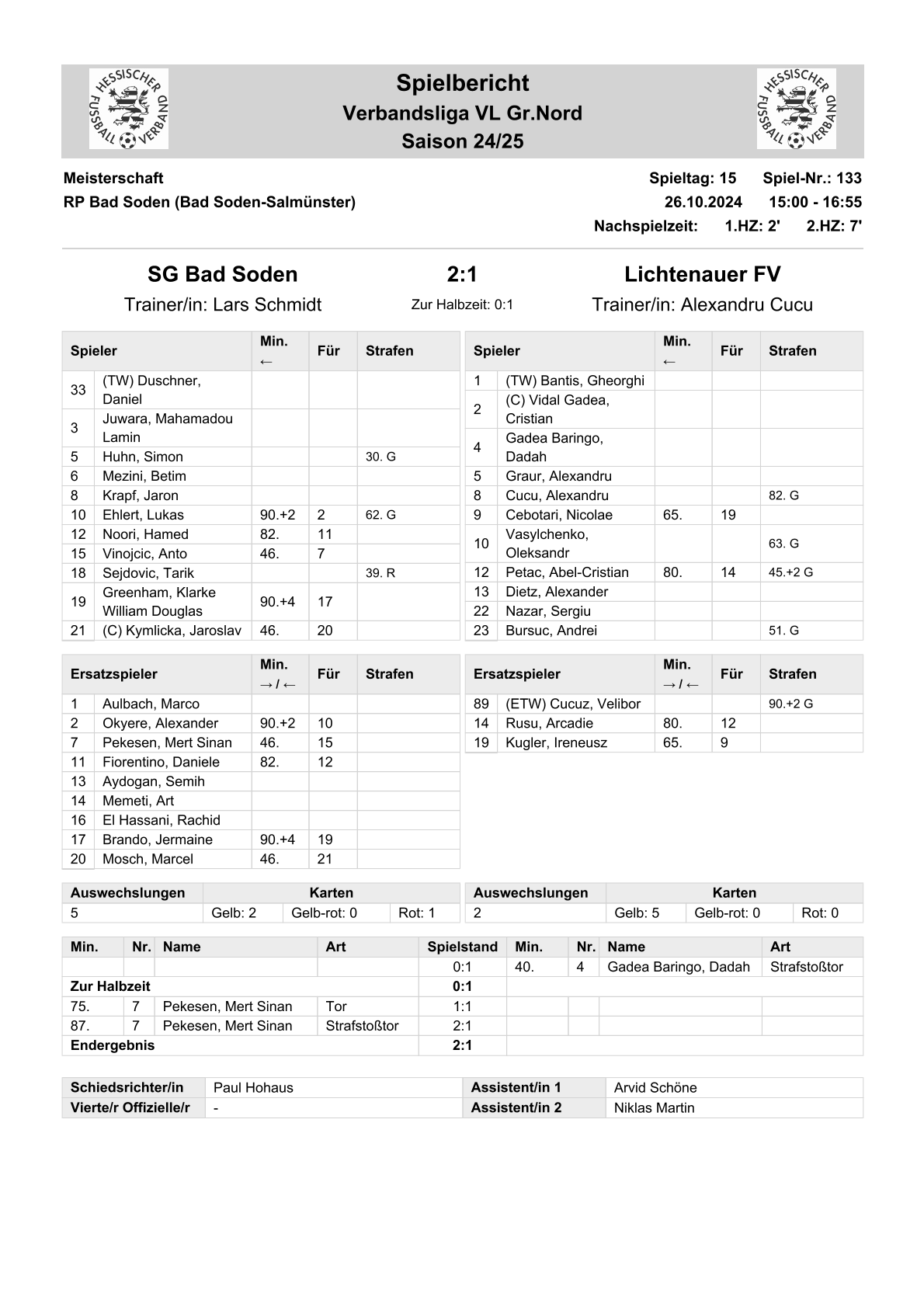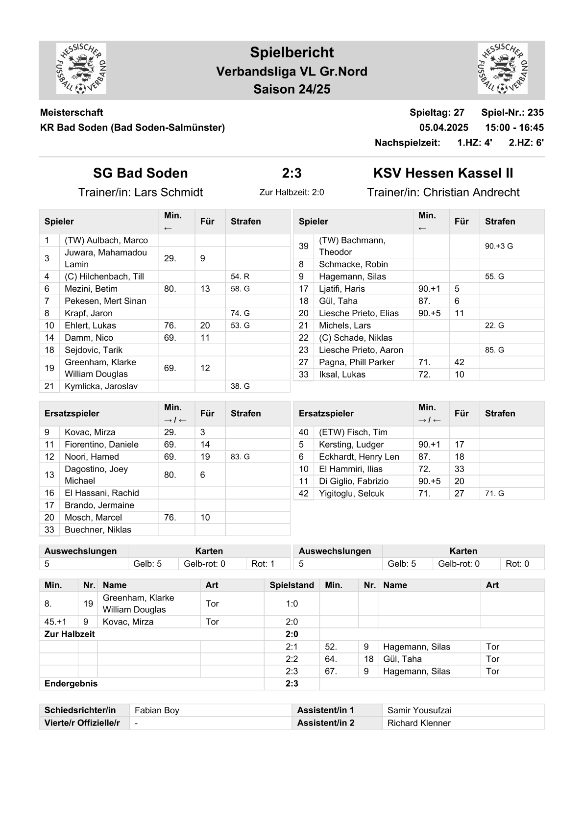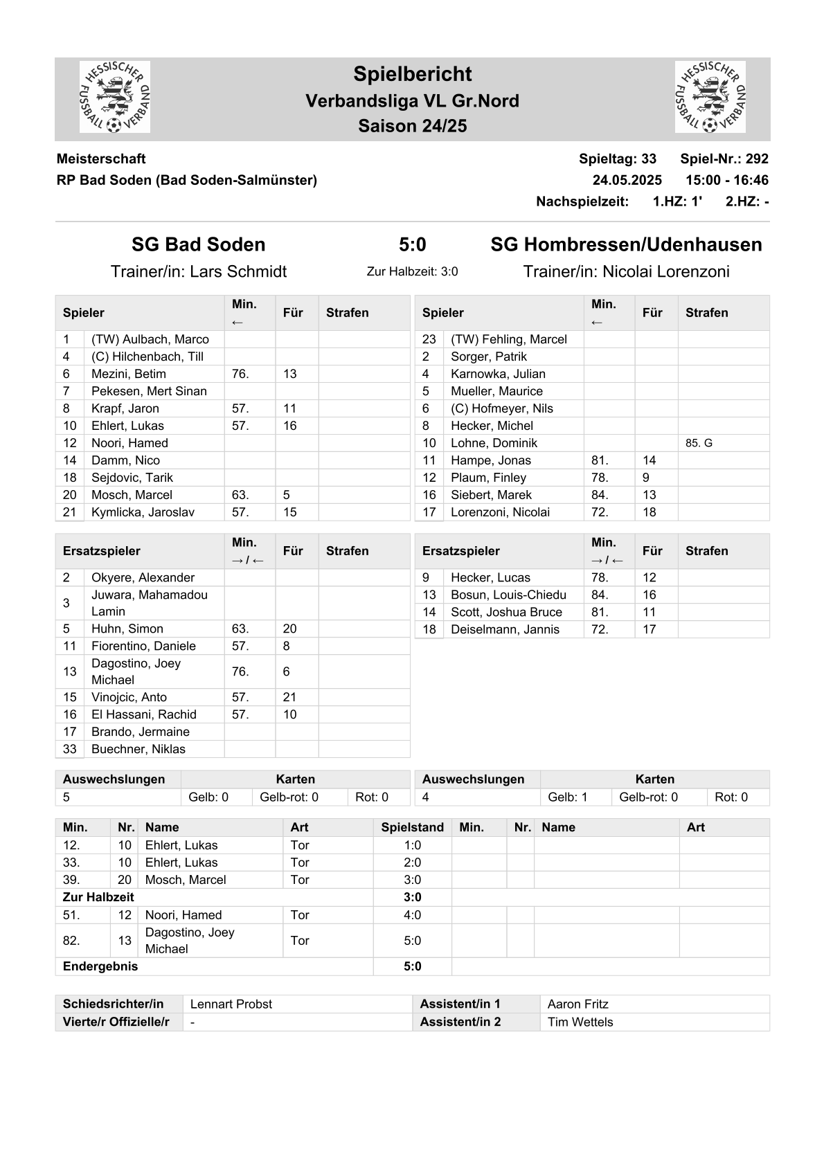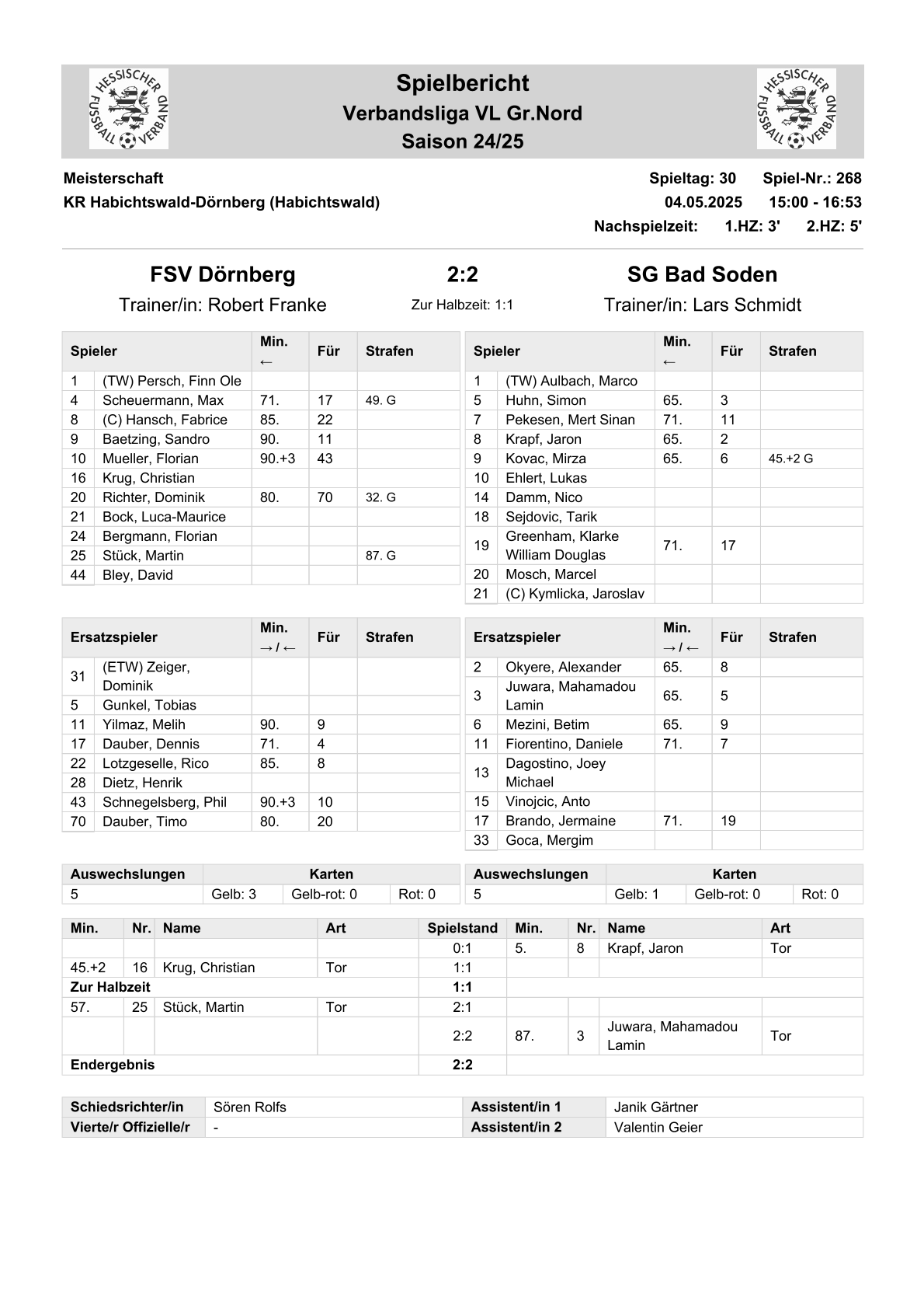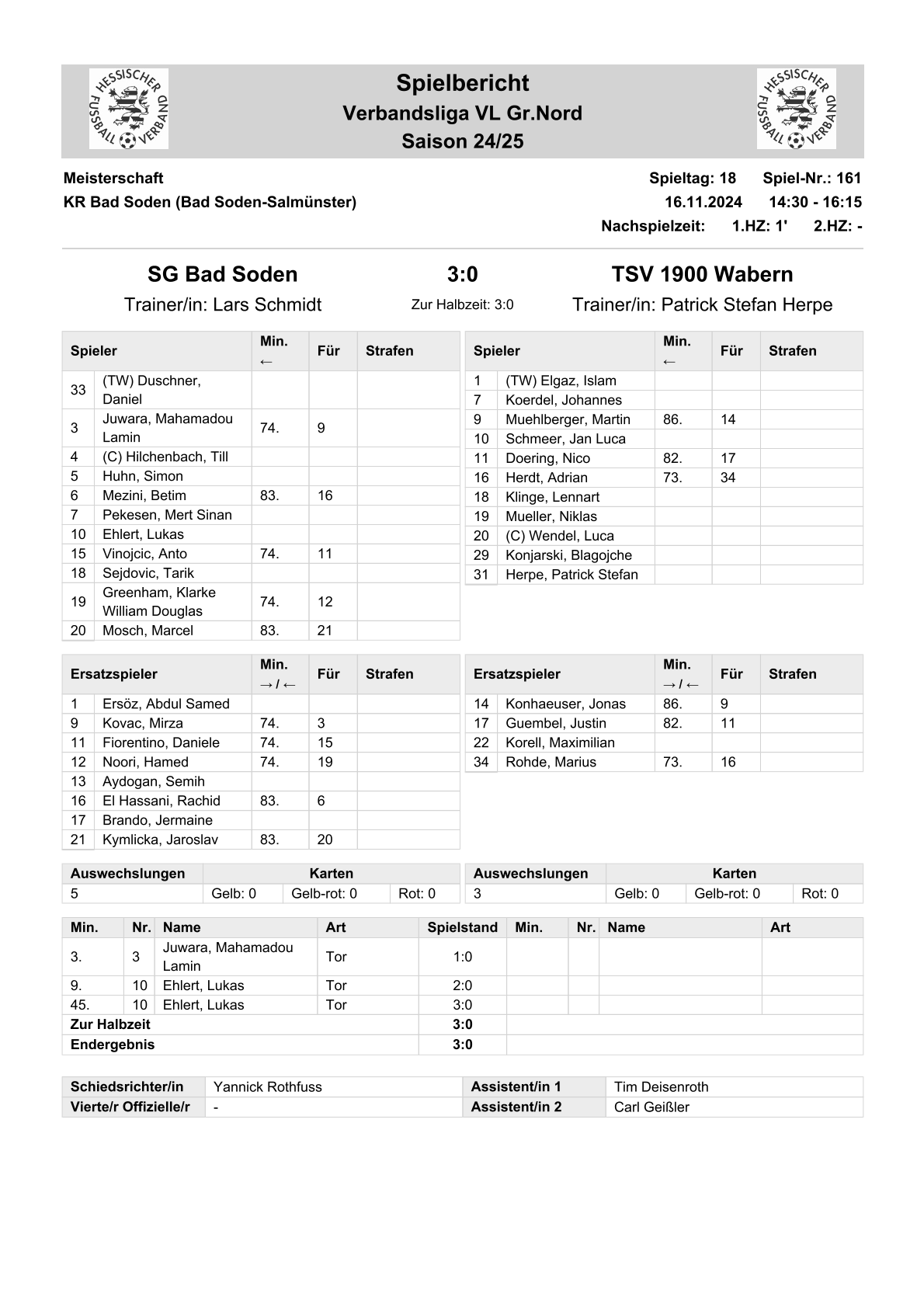 2024/25 VL Spiele im Stenogramm