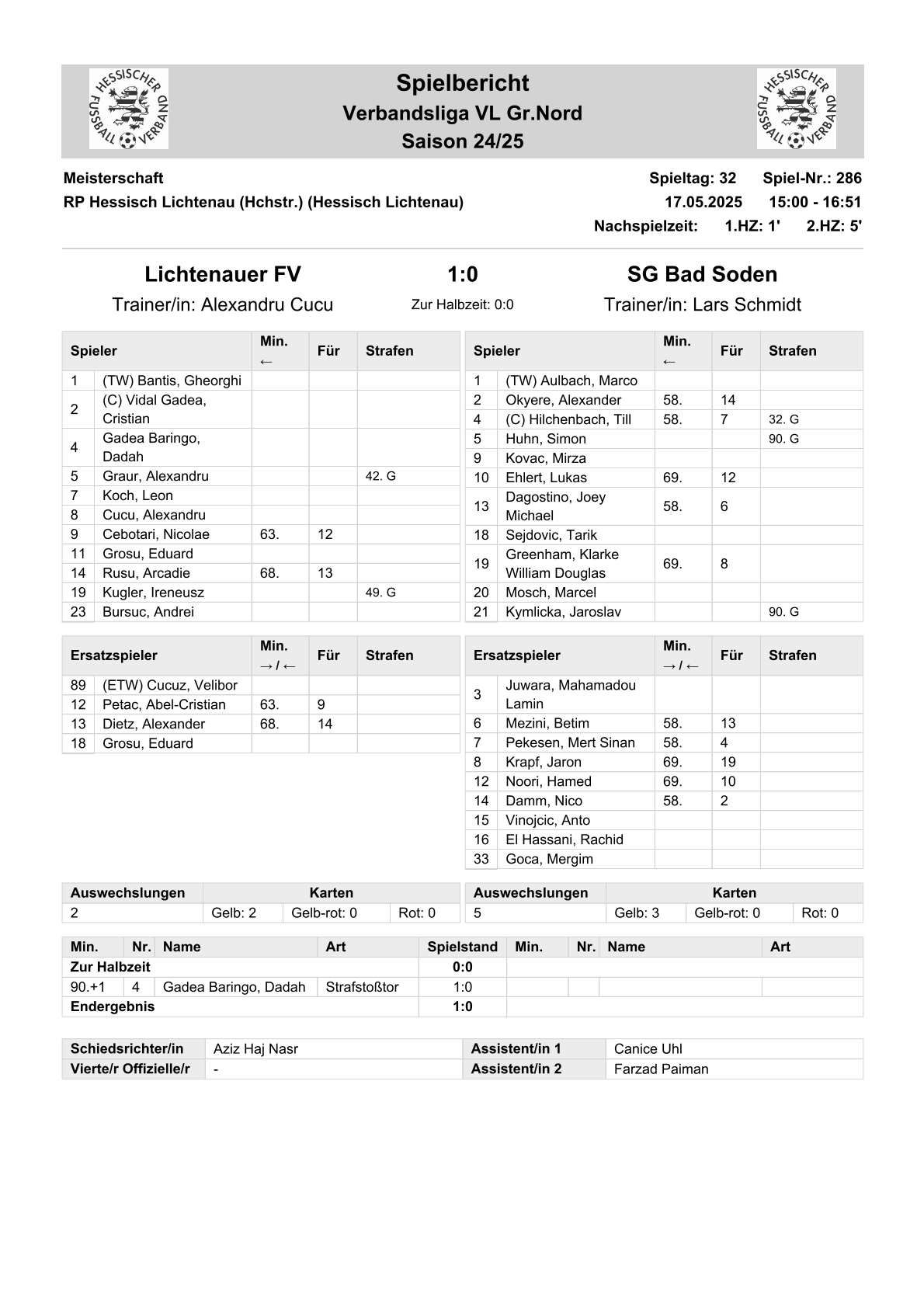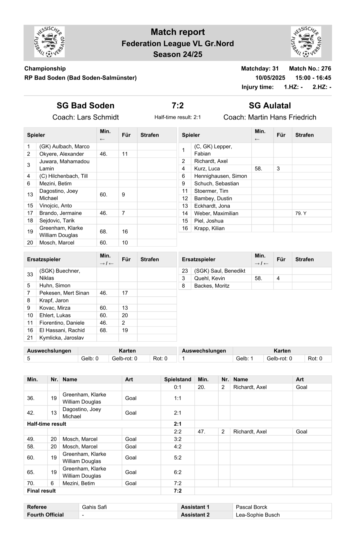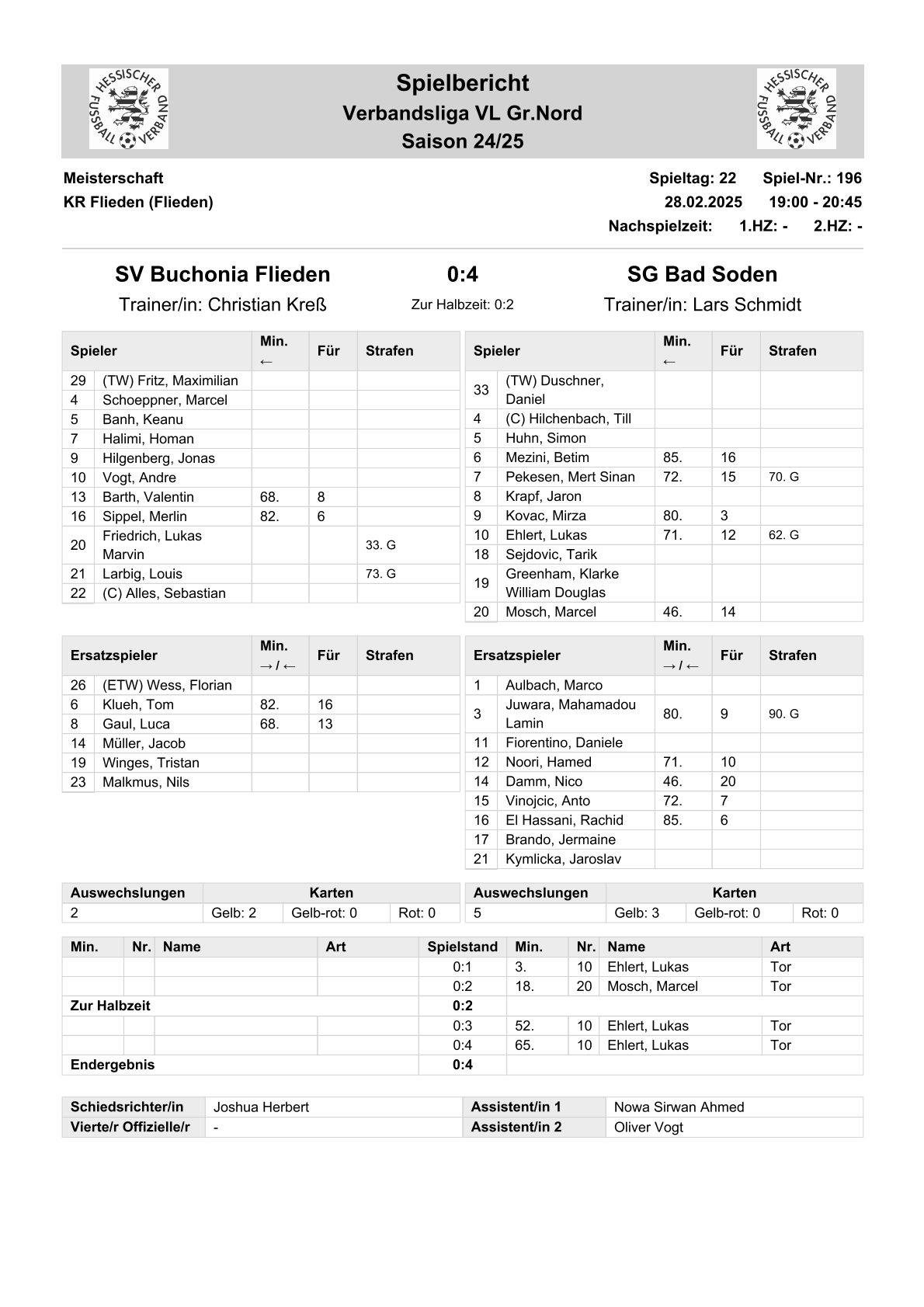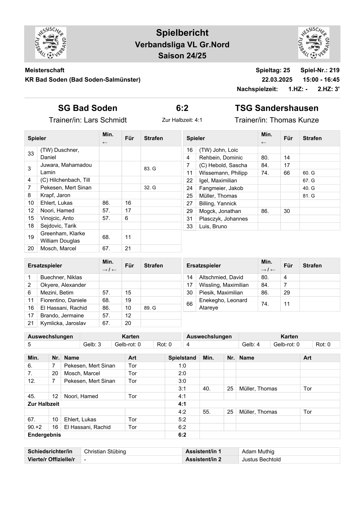 2025/26 VL Spiele im Stenogramm