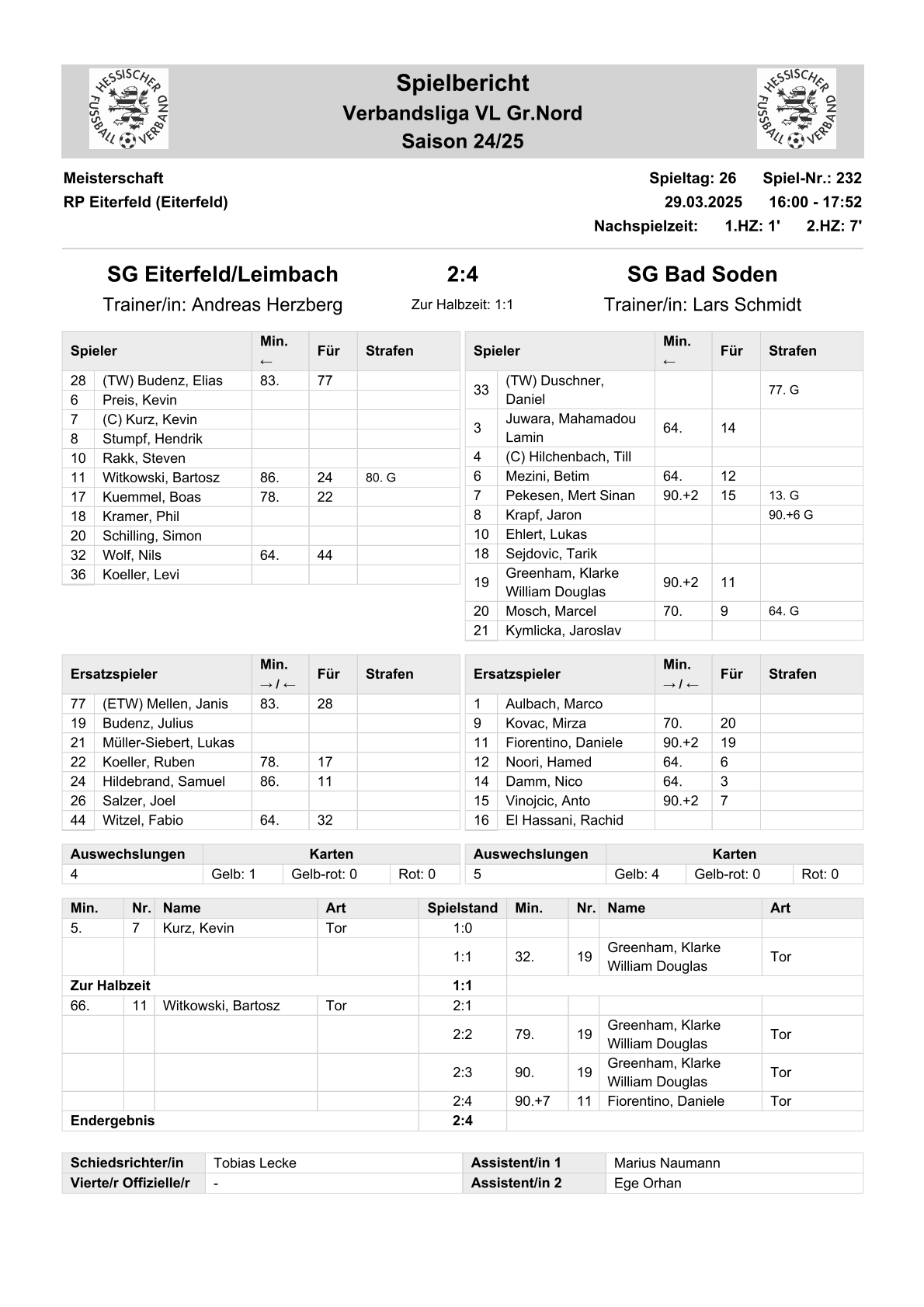 2024/25 GL Spiele im Stenogramm