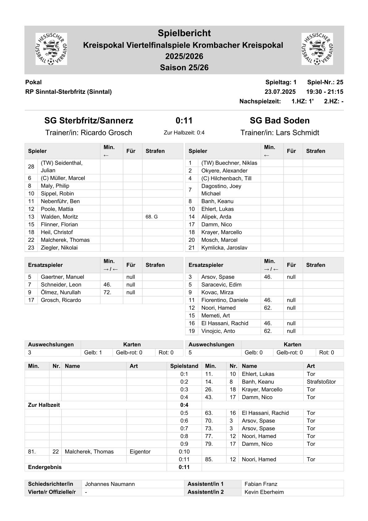 | Spiel 17 | 23.07.2025, 19:30 Uhr | Sterbfritz/Sannerz | -